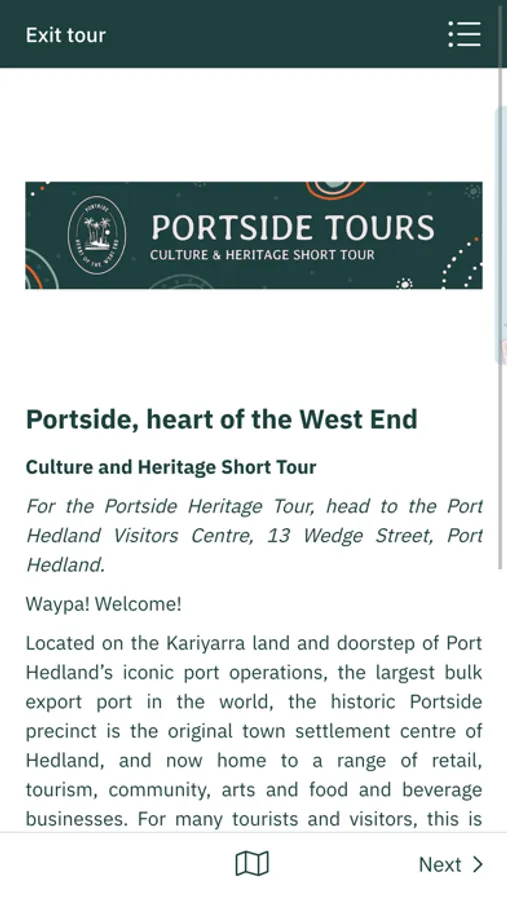 Located on the doorstep of Port Hedland’s iconic port operations, the largest bulk export port in the world, the historic Portside precinct is the original town settlement centre of Hedland, and now home to a range of retail, tourism, community, arts and food and beverage businesses. For many tourists and visitors, this is the first experience and point of contact in Port Hedland, and acts as the gateway to the town and wider region.