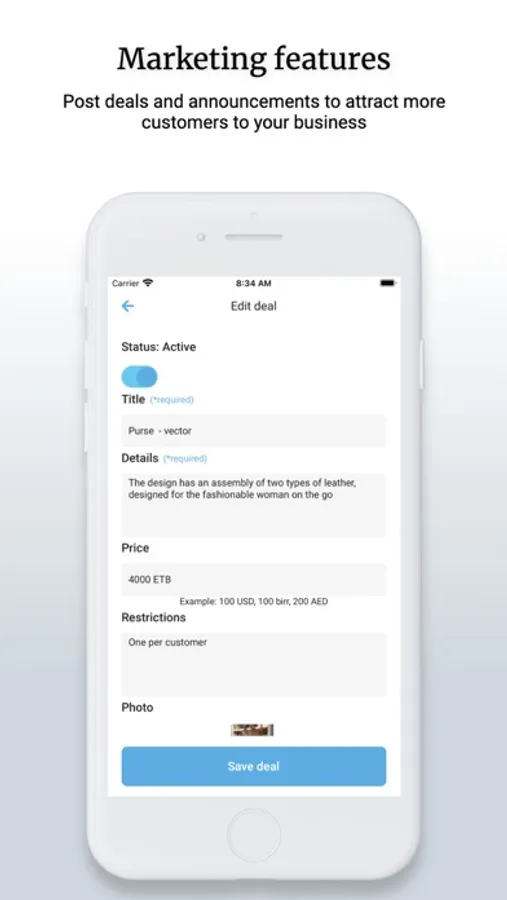 - Post deals for your product or services, add menu(where applicable), post deals and announcements as well.