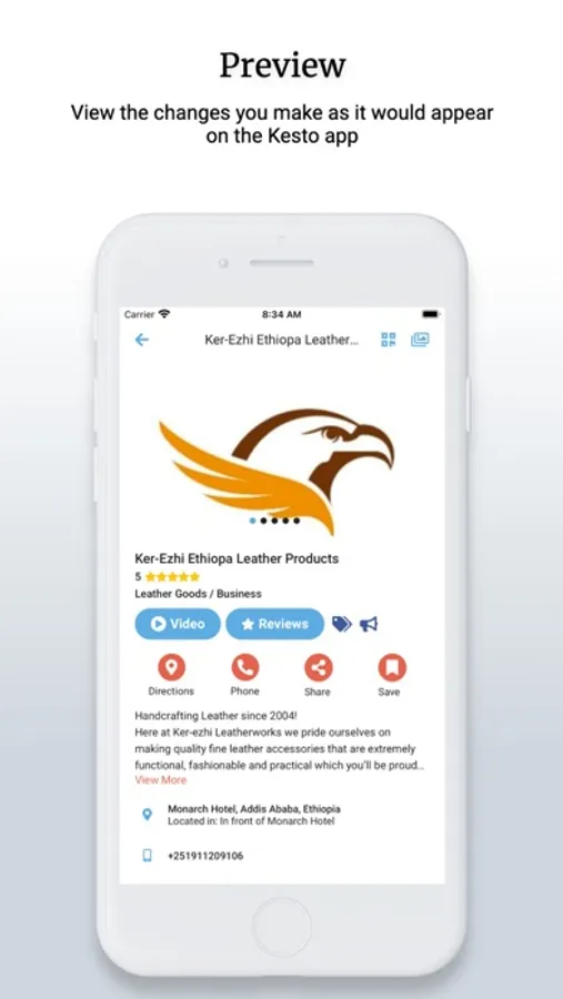 - Make edits to your business or professional profile and see those changes appearing on the Kesto consumer app.