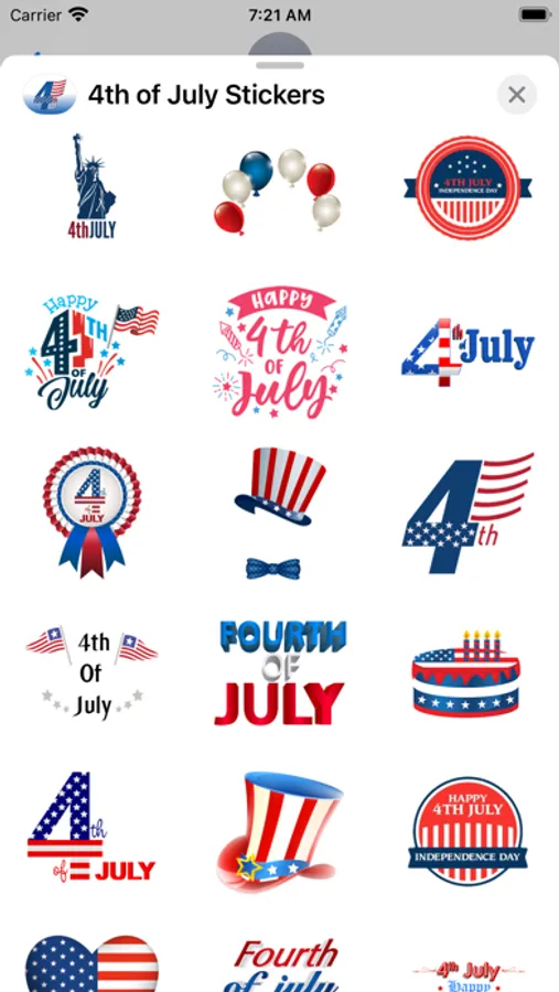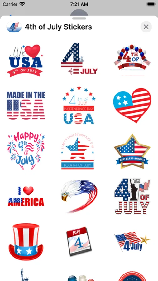 Decorate your Messages and Photos with this pack of Stickers! Improve your conversations and send some Happy 4th of July Stickers!!! to your friends and family!