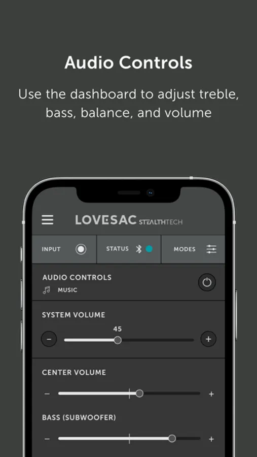 Use the app interface to control bass, treble, volume, and speaker balance via smartphone or tablet.