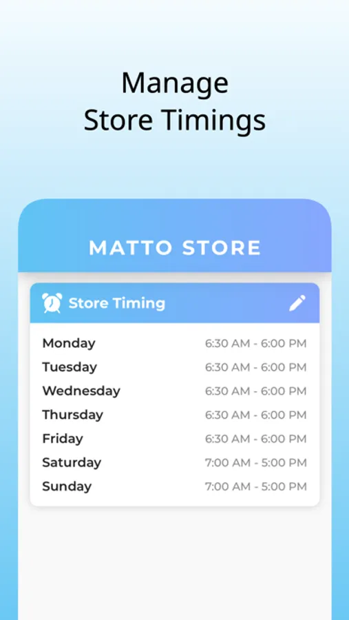 • Manage store daily timings