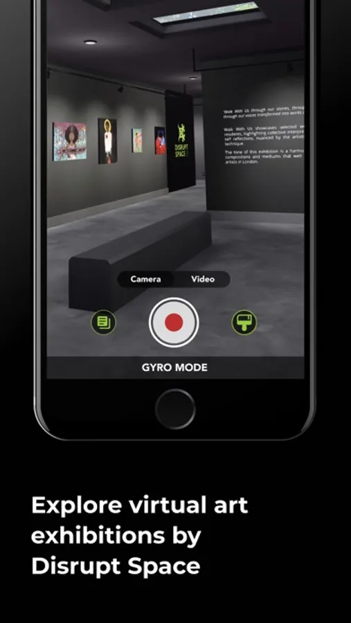 • Navigate through the gallery space by tapping the floor and drag around for 360 view through Gyro-mode