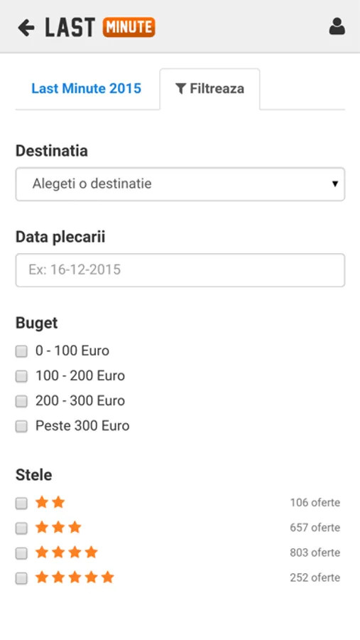 - Aplicatia dispune de filtre de cautare pentru destinatie, pret, categorie hotel, data plecarii si durata sejurului, ceea ce faciliteaza accesul la destinatii turistice variate, la o multime de hoteluri. Poti alege perioada cea mai potrivita sau categoria de hotel dorita si poti selecta din plaja de preturi pe cel mai convenabil.