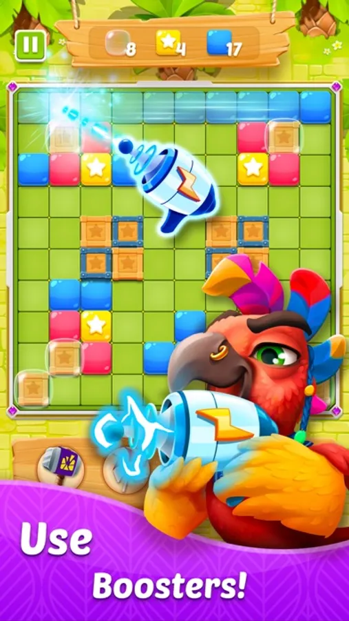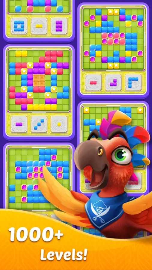 A parrot needs your help. Put different blocks to the 9x9 board to build full lines and destroy them. Complete addictive levels and open new challenging episodes. Keep traveling around new areas and unlock new levels. Don’t forget about your lives — when you lose, your life disappears for a while.