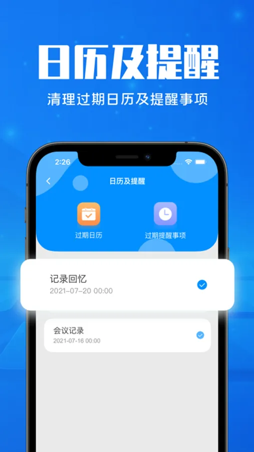 3、日历及提醒。快速扫描过期提醒事项,帮助您聚焦重要事项。