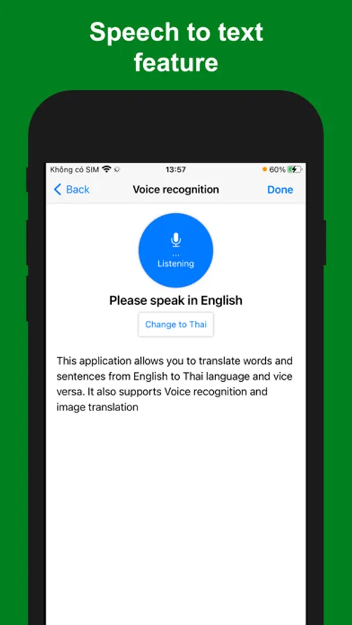 - Speech to text feature (voice recognition): support Thai and English voice input