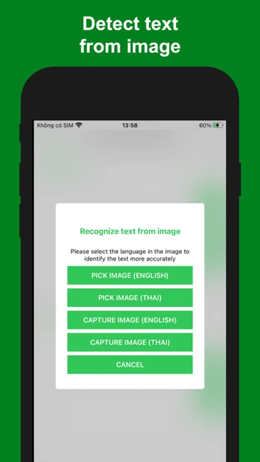 - Detect text from image (image translation): you can select an image then the application will help you to detect text and translate them