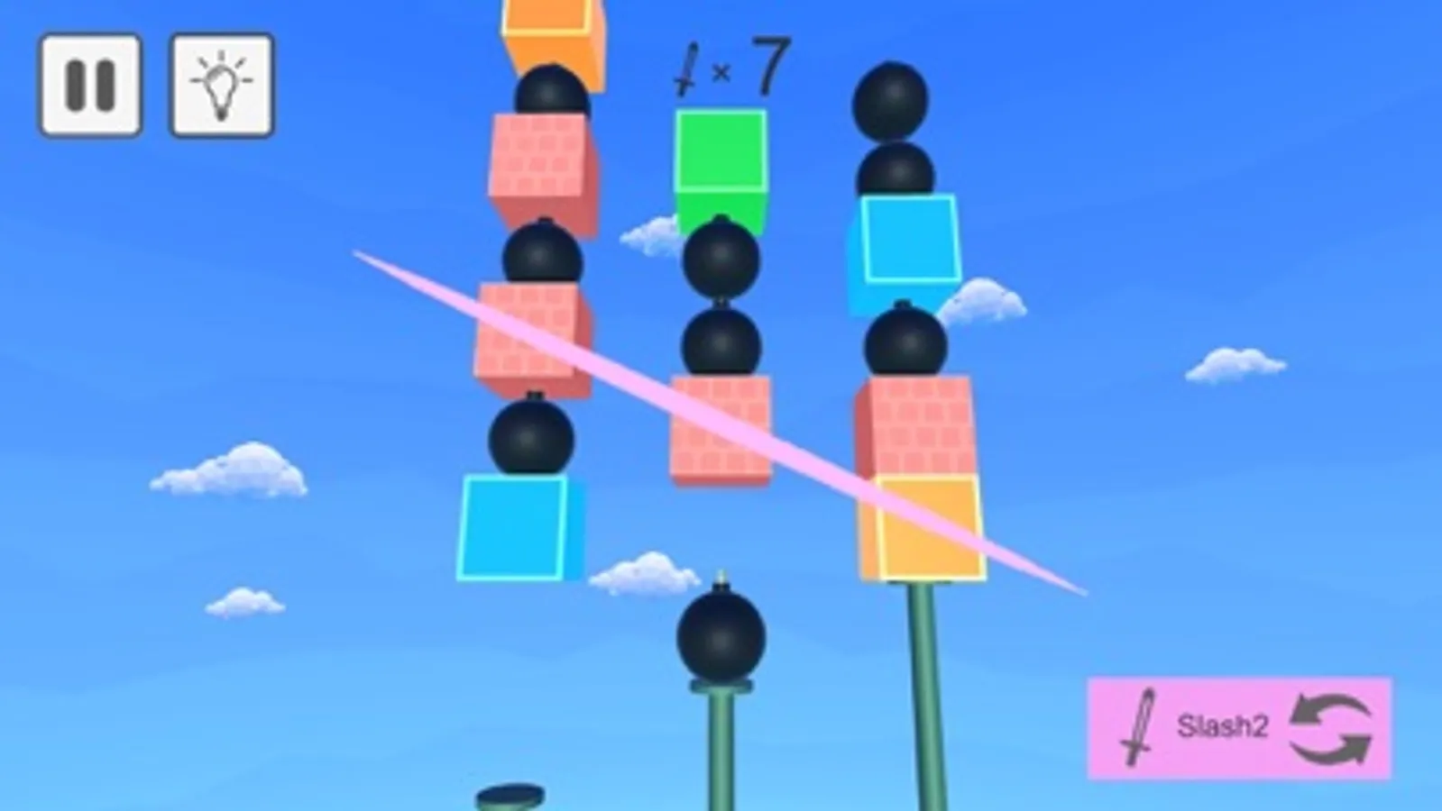 "Flying Slash" is a game in which you fly slashes and cut off blocks.