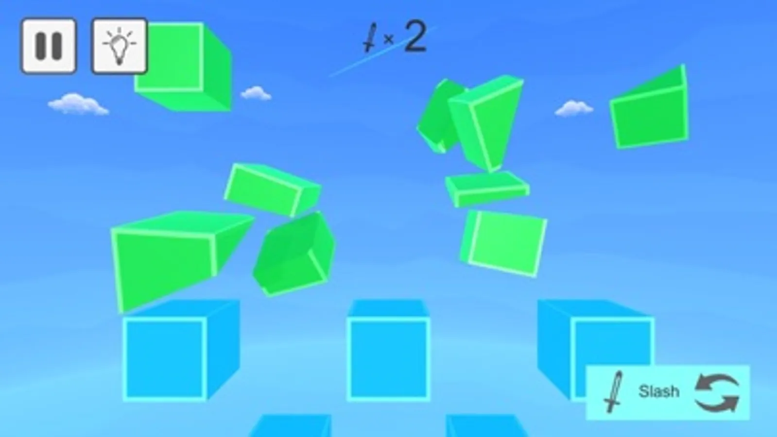 You can switch between View mode and Slash mode by pressing the button at the bottom right of the screen. In View mode, you can move the viewpoint by swiping the screen. In Slash mode, you can fly slashes and slash blocks by sliding the screen in a line.