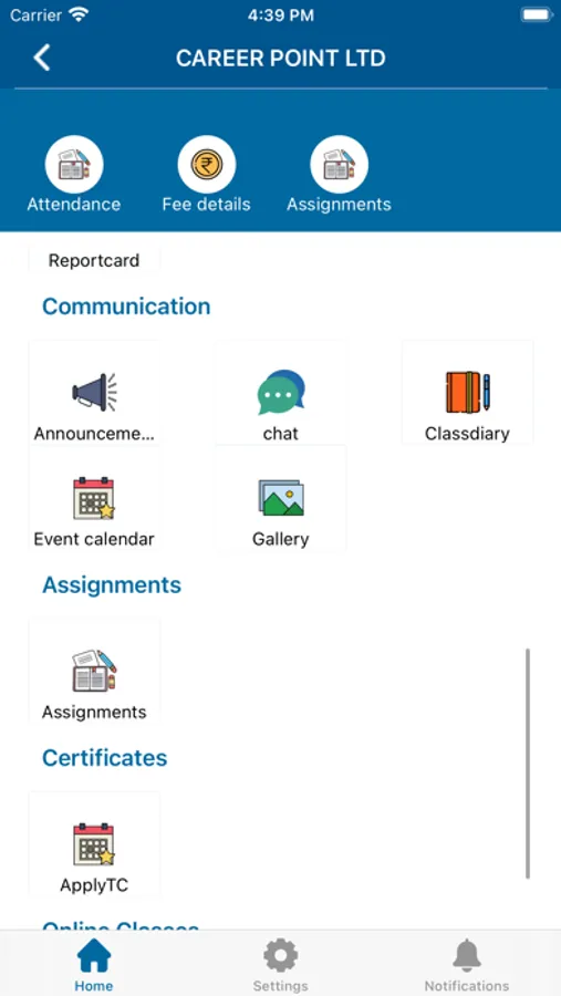 Career Point provides communication app for parents using which they can download school announcements, Class assignments, Events.