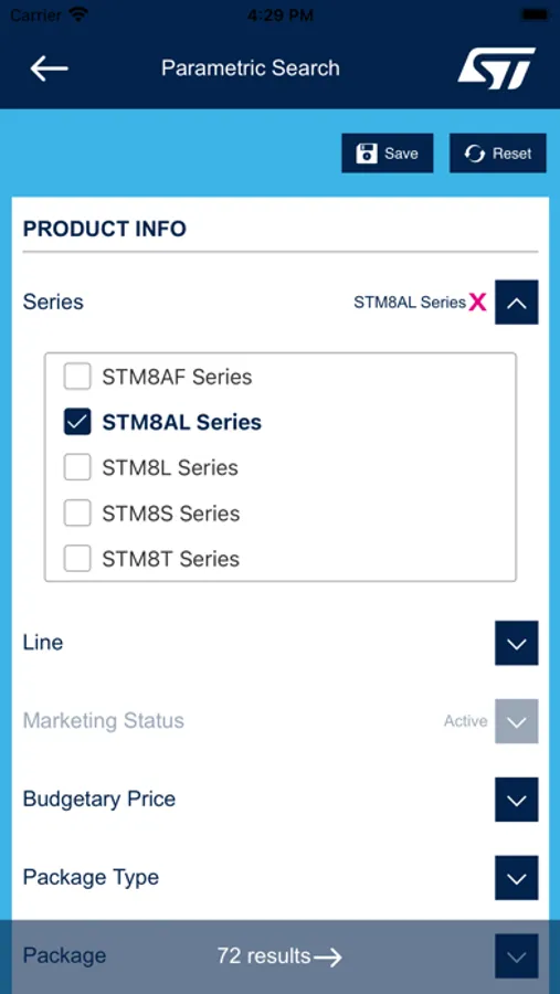STM8 Finder features easy-to-use selection tools that provide you direct access to documentation, and a connection to MCU communities. You will find the microcontroller or