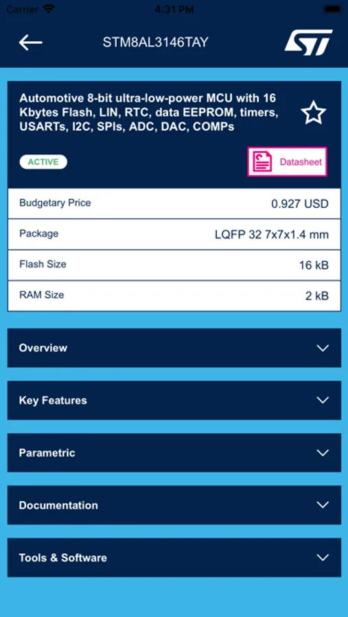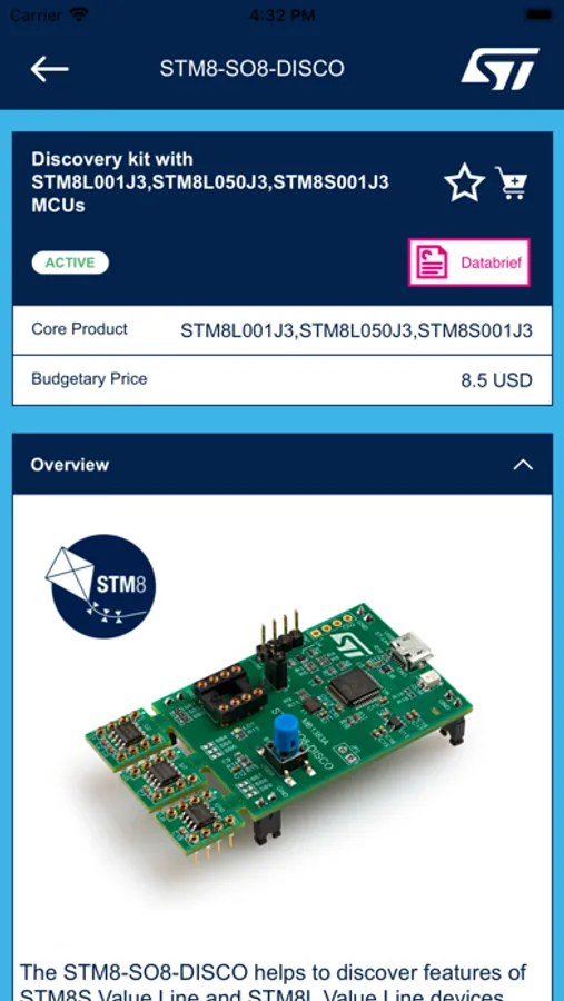 - Instant access to microcontrollers and boards key features, functional block diagrams and technical documentation