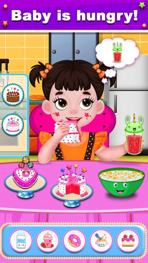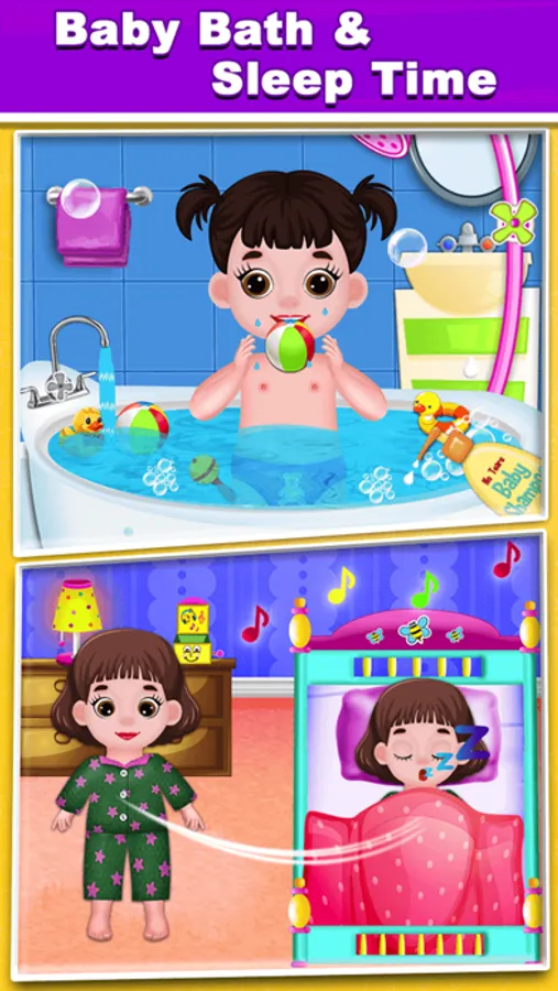 Your baby is dirty. Wipe her clean with a soap and shampoo. Make the bubbles pop and play with her bath toys.