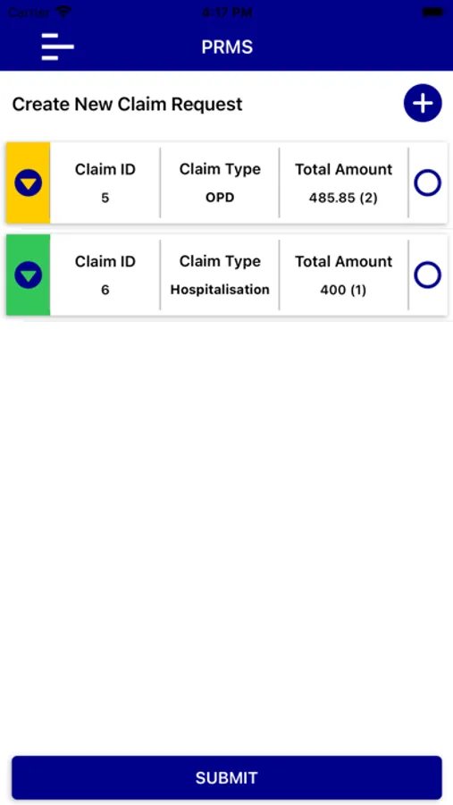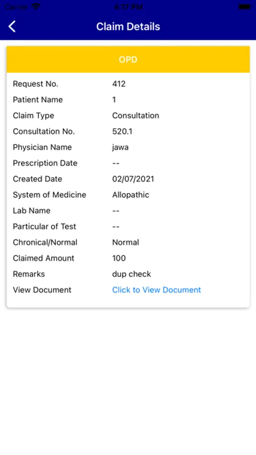 -USER TO SELECT OPD AND THE CLAIM TYPE (CONSULTATION, MEDICINE, TEST ETC.)