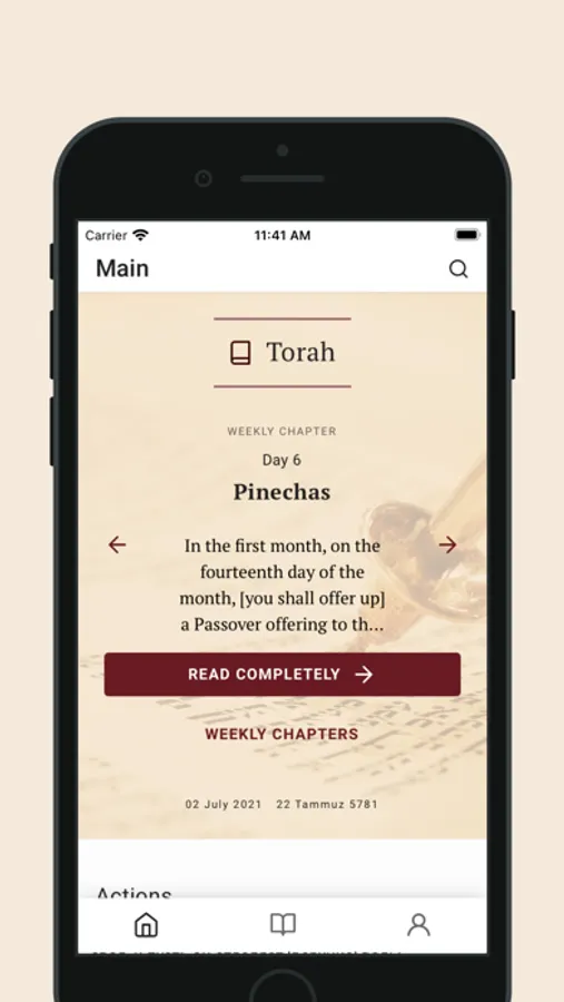 The opportunity to quickly open the fragment of Torah corresponding to the current day or to the weekly portion.