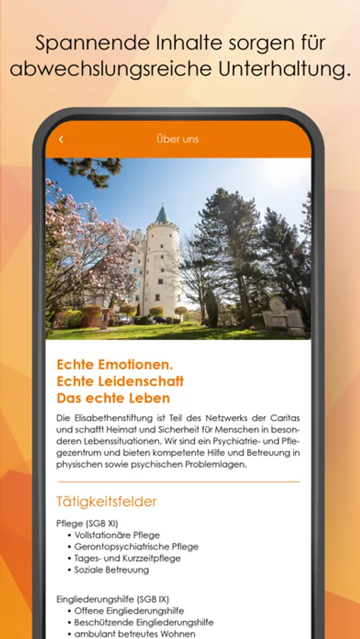Mit dieser App hat man alle Informationen über die Tätigkeitsfelder der Einrichtung sowie Neuigkeiten und Termine schnell und übersichtlich zur Hand.