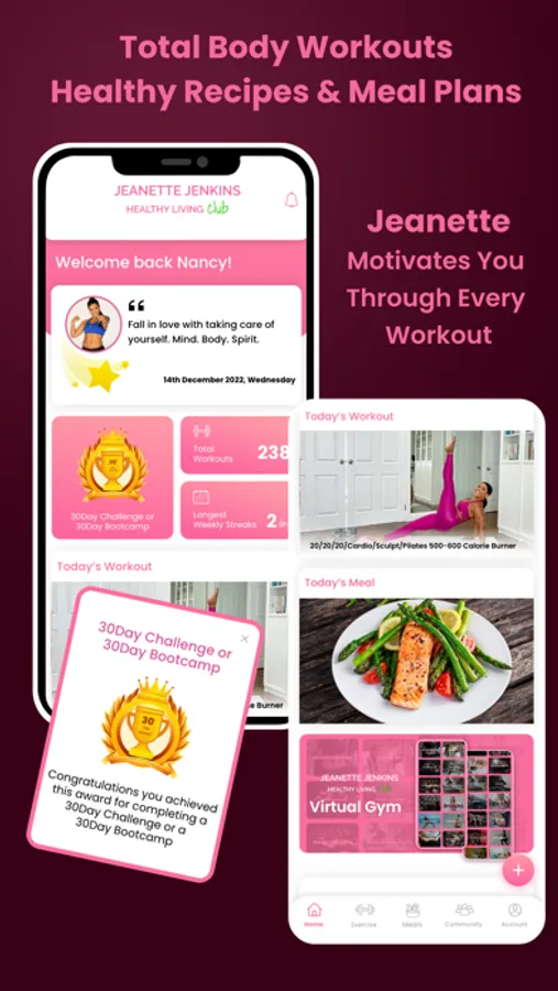 Total Body Training, Meal Plans, Recipes, Daily Motivation, Community Support, Nutrition Tips & Healthy Living Tips created by Jeanette Jenkins, one of Hollywood’s most sought after Health Coaches with over 25years experience. Jeanette’s Teaching methods & Holistic approach have attracted Celebrities, Professional Athletes, Executives and over “100 Million+ Video Plays” by students worldwide that love her fitness programming & teaching style because they deliver results!