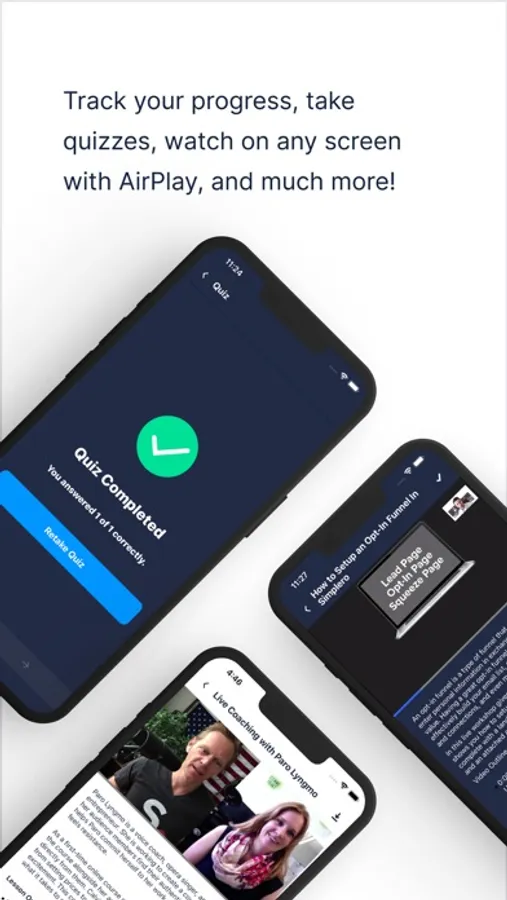 The Simplero app makes learning from Simplero creators on the go simpler and more accessible than ever. Easily access your entire library of Simplero purchases and content, track your progress, and grow wherever you are.