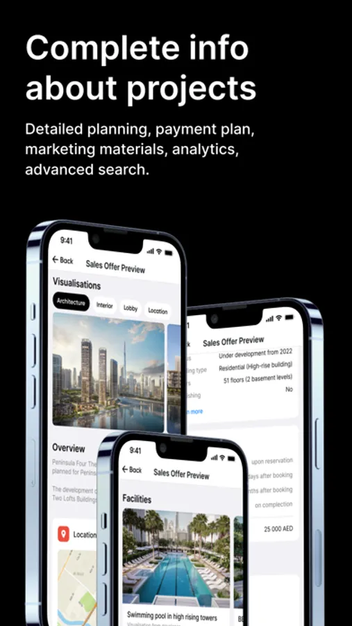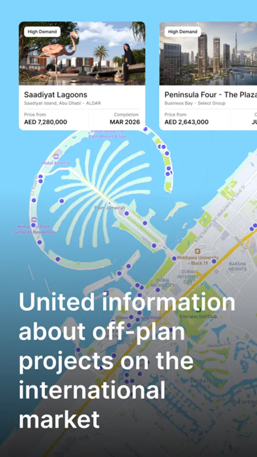 Access united information about off-plan projects on the international market with detailed planning, payment plans, marketing materials, and analytics.