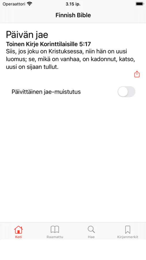 The Holy Bible in Finnish language, Pyhä Raamattu (1933/1938) containing both the Old and New Testaments.