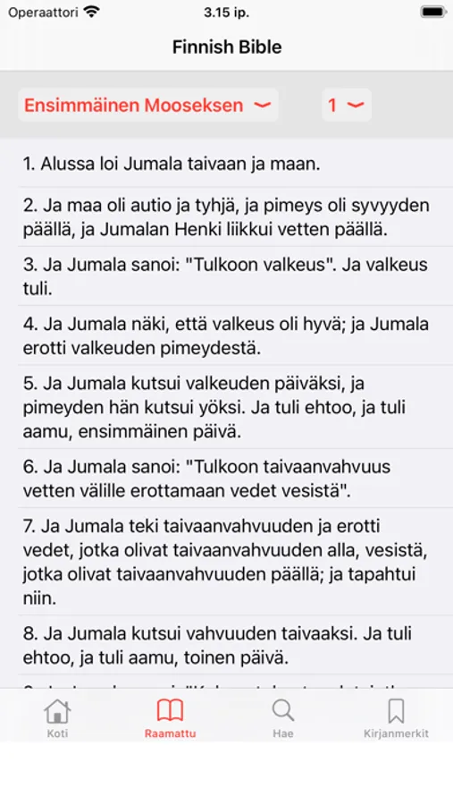 The Old Testament for this Finnish translation was completed in 1933, with the full Bible completed in 1938.