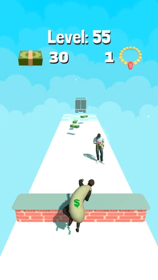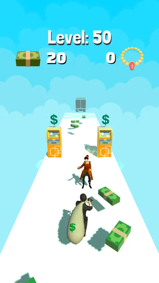 Feel free and steal all. If your money bag is too full, you may not be able to overcome the obstacles, be careful and use the atm. Enjoy being rich!