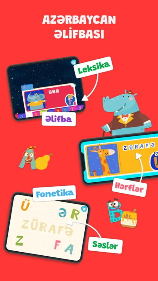Bu oyunda hərflər uşaqlara xəttlərin və qövslərin birləşməsi olaraq deyil, hər biri fərqli bir cizgi film obrazları olaraq təqdim edilir. Özünəməxsus səslərə və hərəkətlərə sahib olan bu hərflər sayəsində uşaqlar həm hərflərin yazılışını, həm adlarını, həm fonetikasını, həm də oynadıqları sözlərin leksik mənasını öyrənir.