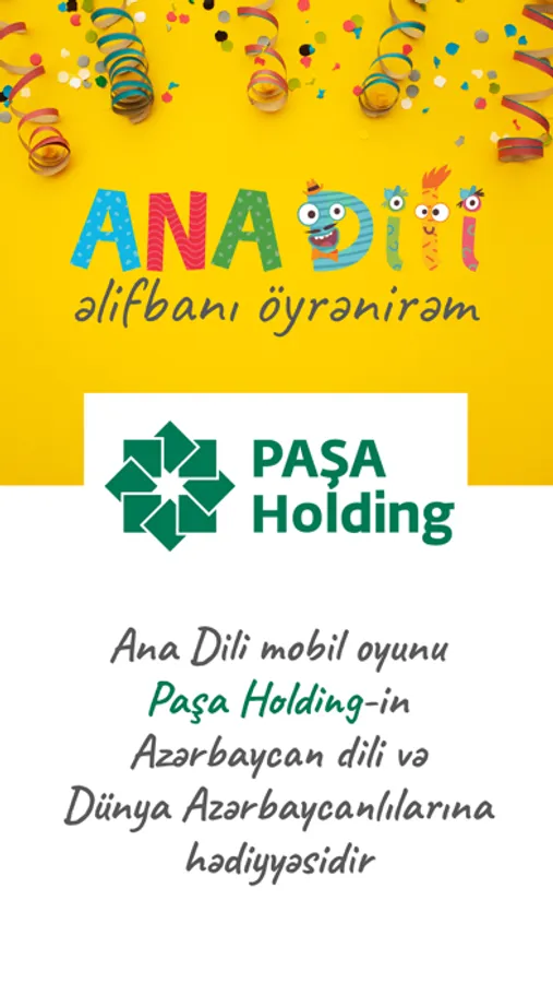 Ana Dili mobil oyunu Pasha Holding-in Azərbaycan Dili və Dünya Azərbaycanlılarına hədiyyəsidir.