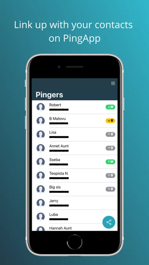Upon registration the application then cross checks the user’s contacts and identifies those that are already registered with the application and displays these as pingers. This enables the current user (pinger) send location requests (pings) to the fellow pingers displayed by the application, this can be done by tapping on the contact .