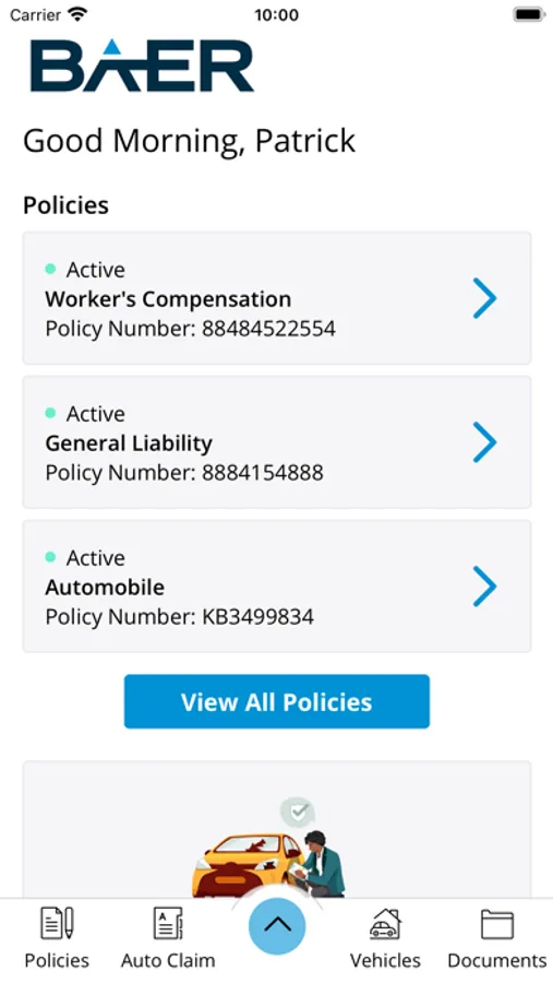 Baer Mobile is accessible only for Baer Insurance clients. For additional information on Baer Insurance Services and our mobile app, please contact us at baer@baerinsurance.com