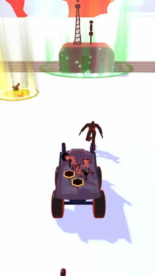 In order to control war machine, simply you need to tap and hold your finger and swipe left or right. To eliminate the enemies just get close to them. Before they reach the car, you need to eliminate all of them.