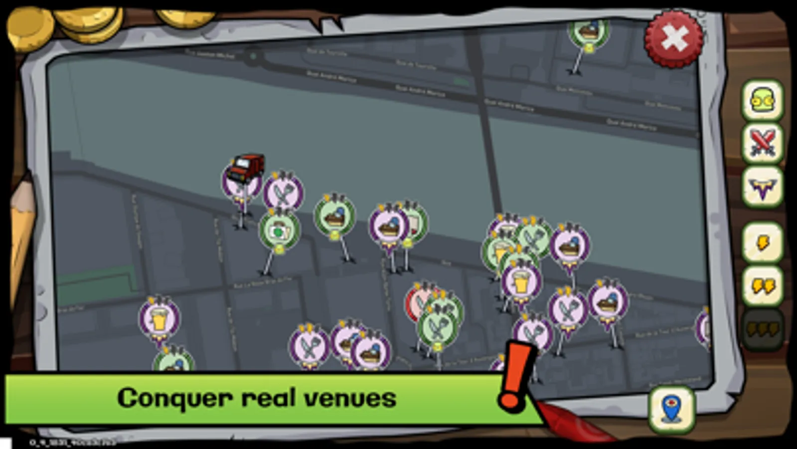 * Geo-localized: conquer venues near your, or use bonuses to attack places in other countries!