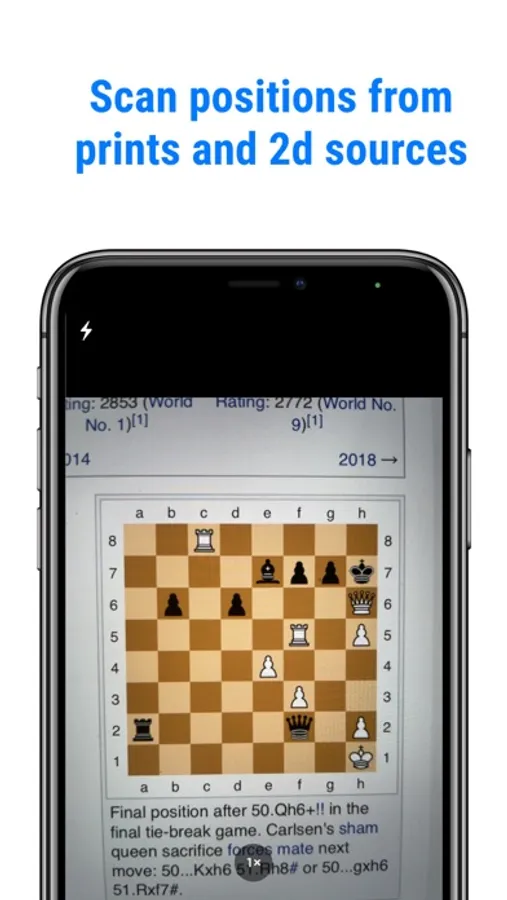 Scan and analyze chess positions from prints and 2d sources on your smartphone or tablet.