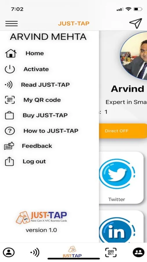 JUST-TAP NFC Business Smart card is a small portable computer, usually the size of a credit card, without a screen and keyboard. It integrates microprocessors, some memory, and several applications. Round metal contacts are very important to connect to the chip below and activate the card contact profile electronically.