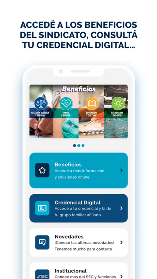 Con la app SoySEC podrás acceder a tu credencial virtual y la de tu grupo familiar afiliado desde tu celular.