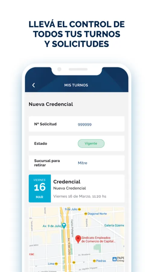 - Visualizá turnos futuros e históricos. También podrás solicitarlos, reprogramarlos o cancelarlos.