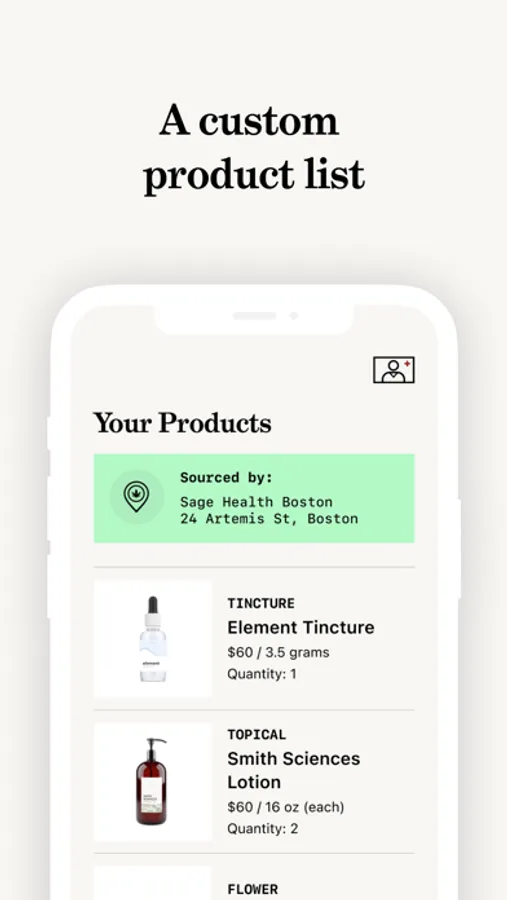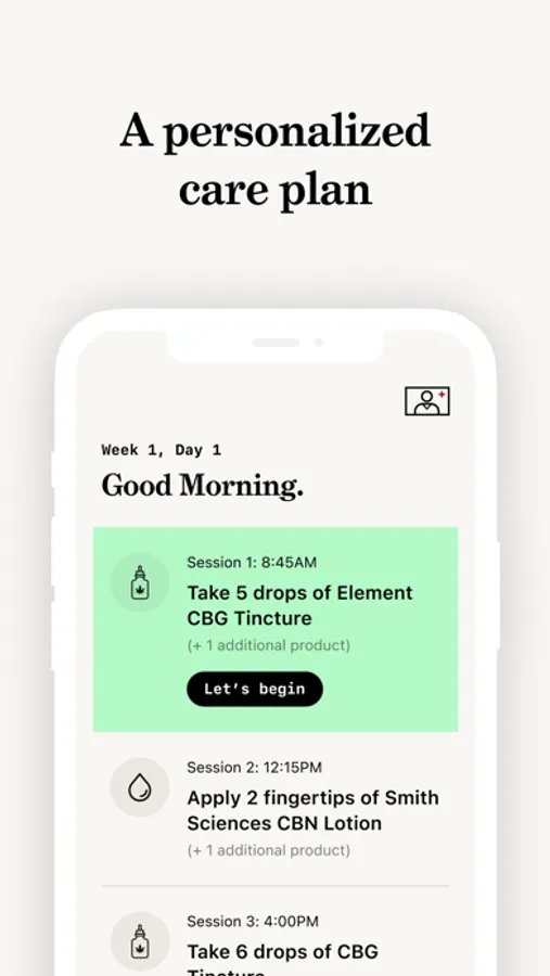 • A personalized, calendar-based cannabis care plan and a custom list of products available at a dispensary near you. Both your care plan and product list are data-informed, clinician-reviewed, designed to provide maximum relief, fit how you live - and evolve with your input.