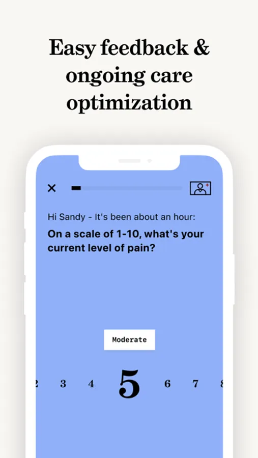 The ability to easily share how you’re feeling both in-session and at the end of the day. Your input powers the eo experience and allows our clinical team to refine your care plan and product list.