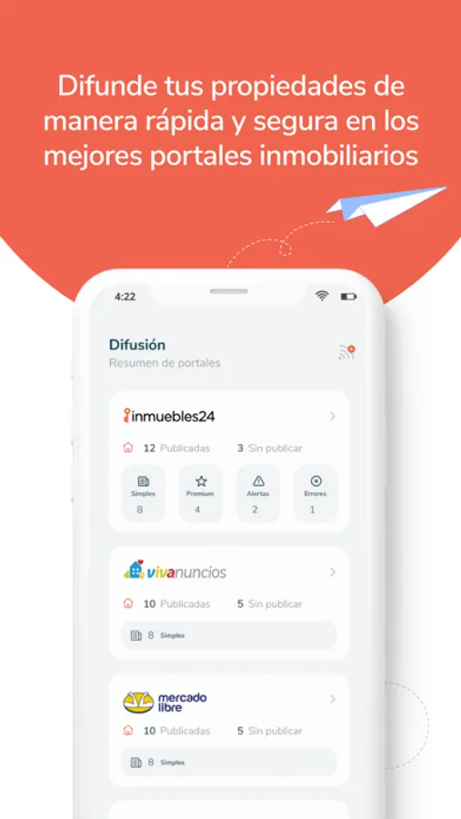 - Habilitar portales y difundir tus propiedades de manera rápida y segura.