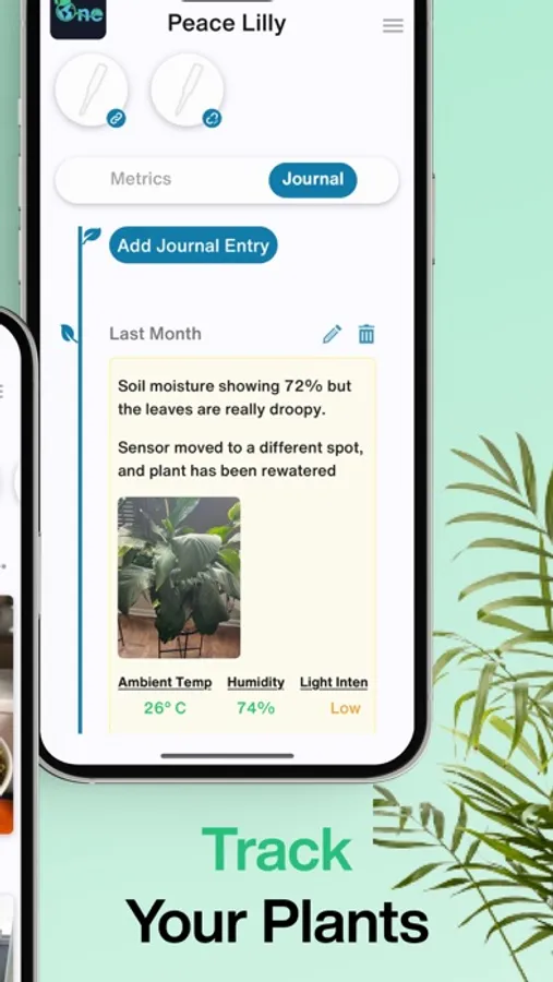 - Keep a journal for each of your plants to track their progress, customize your journal with pictures, notes, and more