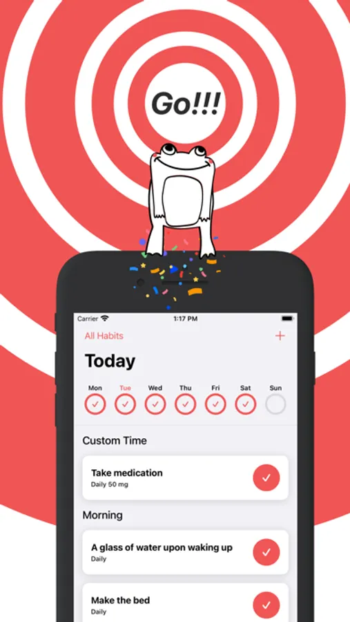 ◆ Unique "Day Frogs" to motivate you to complete the day