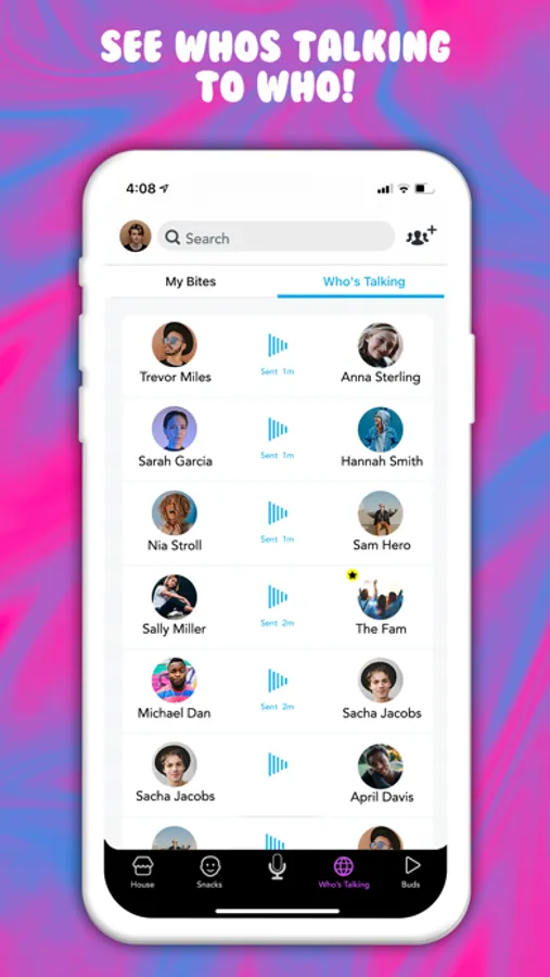 •Flashbite opens right up to your list of friends- just tap to play a voice chat, or press & hold to send one.