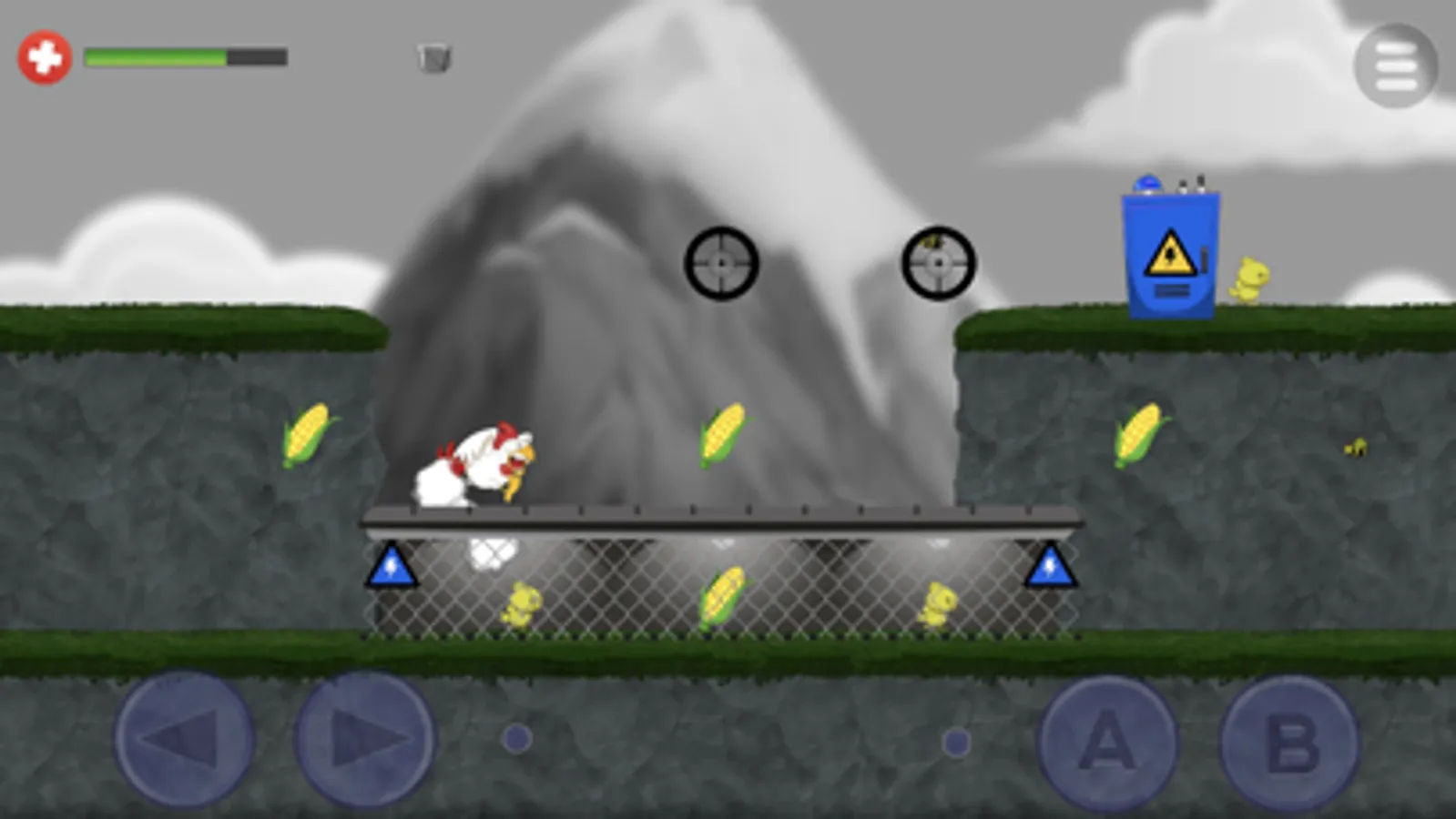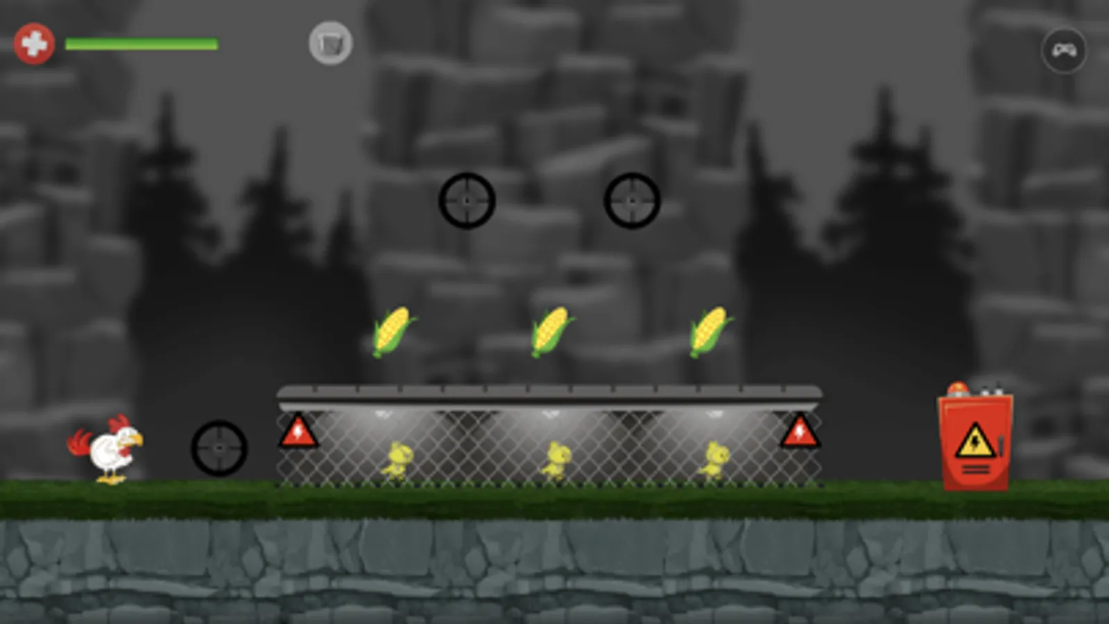 Free the chicks by blowing up their cages to complete a level. Don't forget to eat all the corns first (and earn a special egg) before rescuing the last chick. Keep your health at 100% as well to achieve a perfect score. Avoid all the snipers and entities that can send you to chicken heaven (or someone's dinner plate).