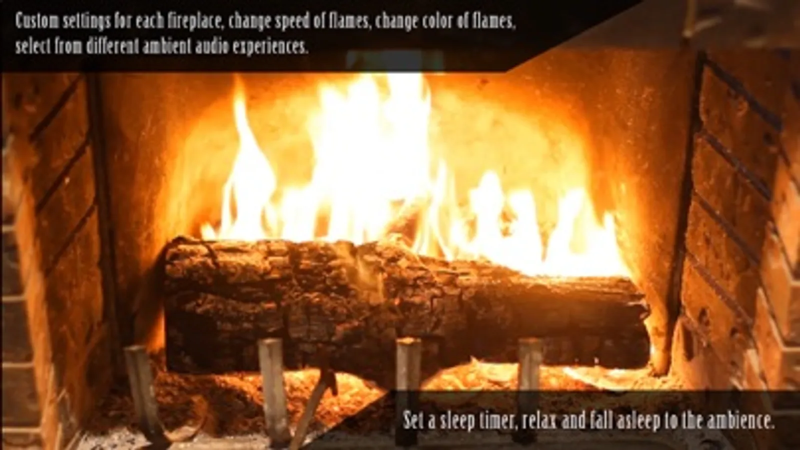 Version 7 is here now you can create an even better ambient experience with flame color changing effects and with more ambient audio featuring unlockable thunder, rain, night sounds, and more to go along with your fireplace!