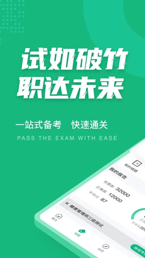健康管理师题库内含考点练习,全国通用卷以及地区卷模拟练习,以及按照固定考试比重的随机式的抽题的真题考场,成绩单实时记录考试数据,一点一滴的反馈考生近期学习状态以及自我正确率的提升,大大的给予考生通过考试的信心。
