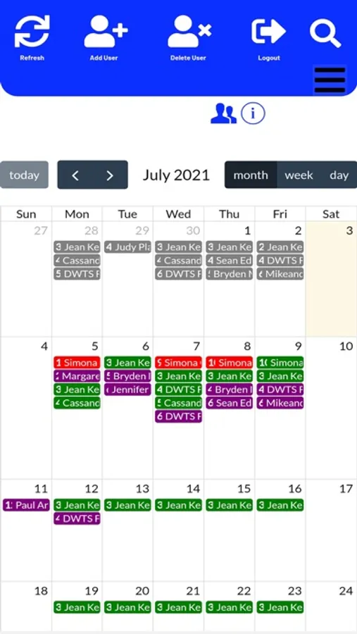 Different Menu for Admin and Students. The students can see just the own lessons on the calendar, competitions done, Lessons left.
