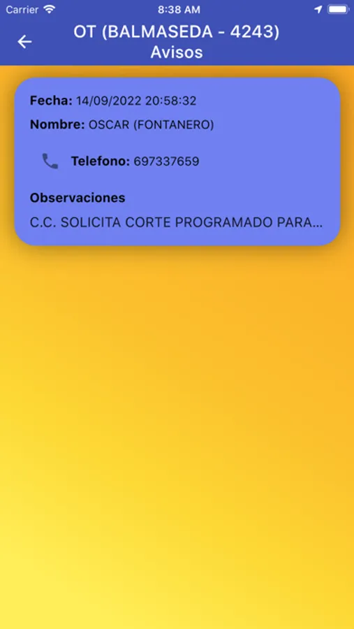 Acceso para la consulta y actualización de los datos de las ordenes de trabajo creadas para las labores de mantenimiento de las redes de distribución de agua potable del CABB.