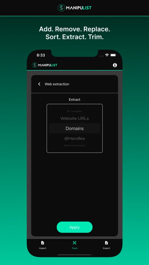 Manipulist is a text productivity tool to help you transform text the way you need it, in few clicks.