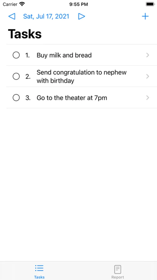 - mark completed tasks and move uncompleted ones to any other day;